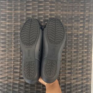 crocs women’s flats women’s size 9 in good preowned condition. Normal wear and tear. The color is black see pictures for more details. Super comfortable.