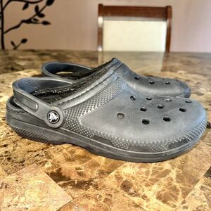 Crocs Classic Slip On Fleece Lined Sandals Clogs in Black