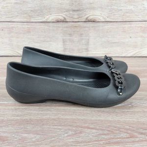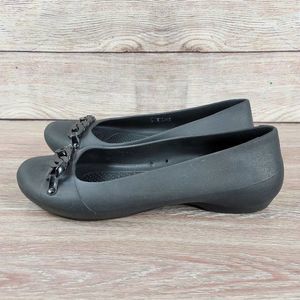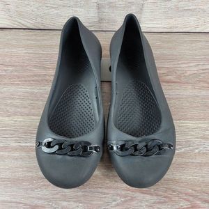 Crocs Gianna Ballet Flats Black Chain Link Women's Size 8 Comfort Slip On Shoes
