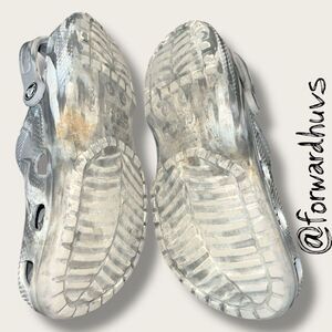 These Crocs Classic Marbled Clogs feature a unique marbled Croslite material, ensuring that no two pairs are exactly alike. The wavy design adds a distinctive touch to the iconic clog style, making them both stylish and functional.