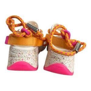 The Crocs Hiker Xscape Festival Platform Sandals in Women's Size 6 feature a slip-on closure with adjustable string and strap accents. These colorful multicolor sandals have a mid-height heel and a rubber outsole, making them perfect for travel, activewear, and casual occasions. The sandals are adorned with adjustable string and strap features, a confetti pattern, and the iconic Crocs character, making them a fun and vibrant choice for the summer, fall, and spring seasons. Made with a rubber upper and insole, these sandals offer both style and comfort for women looking to make a statement.