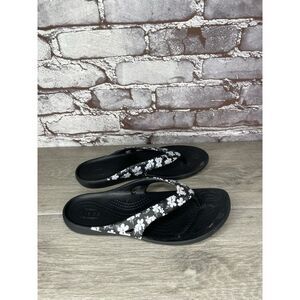 Selling Crocs Kaydee II Gray Floral Seasonal Thong FlipFlops Sandals Women Sz 7M US/38EU