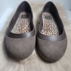 Crocs Mammoth Women’s Ballet Flat Leopard Fur Brown Shoes Size 10
