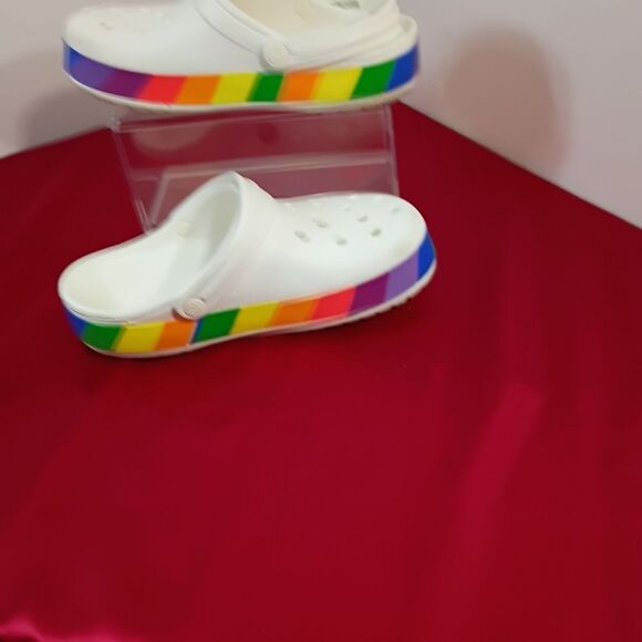 Crocs Men's SZ 5 Women's SZ 7 Rainbow Pride White Slip On Shoes Sandals