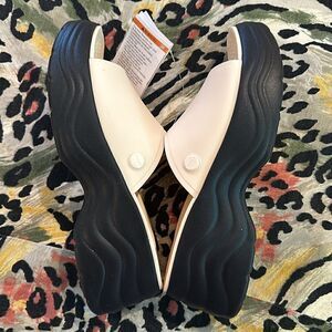 Crocs Skyline Slide Size 9 Women’s Crème with Black Platform Sole