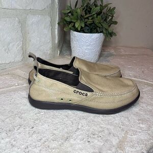 Crocs Walu Tan Slip On canvas Loafers sz 7