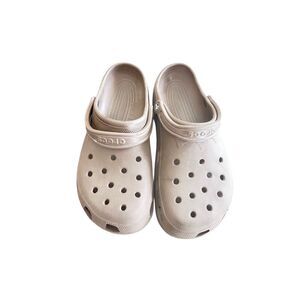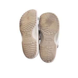 Everybody loves the comfort of the Crocs Classic Clog keeps the feeling confortable all season , outside soles have signs of wear.