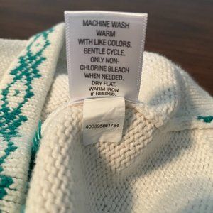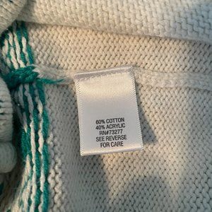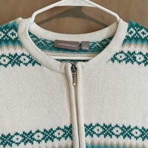 Cardigan Sweater with Full Zipper Size Large Preowned sweater. *There are stains underneath the cuff of each sleeve (shown in pictures). Stains would be visible if the cuffs were rolled. Brand: Croft & Barrow Made in Hong Kong 60% Cotton 40% Acrylic Length 25 inches Shoulder width 14.5 inches P2P 20 inches Bust 40 inches Sleeve 24 inches Cuff width 4.5 inches Cuff height 1 inch Weight 1 pound 2.7 ounces