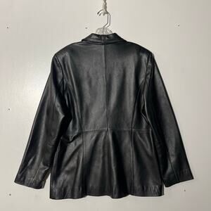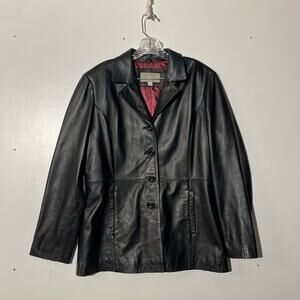 Croft And Barrow Black Lambskin Leather Button Up Coat Jacket Womens Size Large