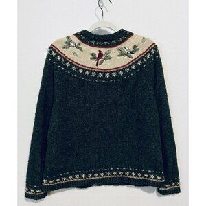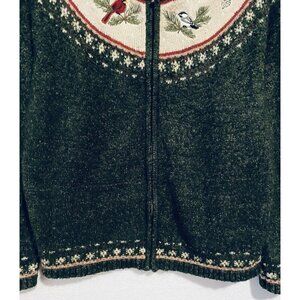 Croft And Barrow Cardigan Sweater Womens XL Green Embroidered Birds Silk Wool