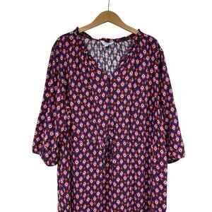 Croft And Barrow Geometric Pattern Pink Midi Dress Womens Plus Size 2XL