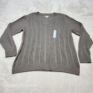 Croft And Barrow Sweater Women's Size XL Brown Cable Knit V Neck Soft Cozycore