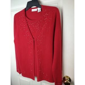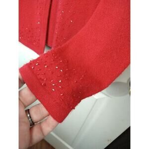 Croft And Barrow Woman M Sweater Red Beaded Pullover Cardigan Tank Front Lined