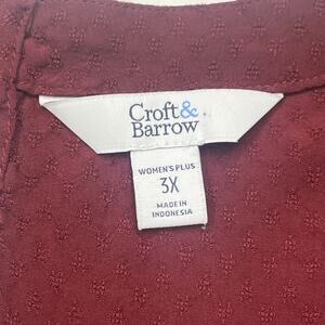 Croft And Borrow Popover Top Blouse Maroon Sz 3X Career Cottage Peasant Relaxed