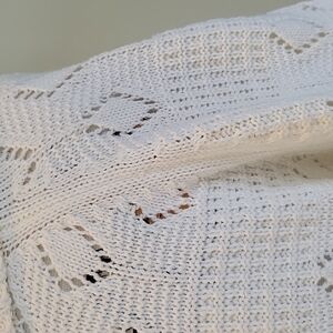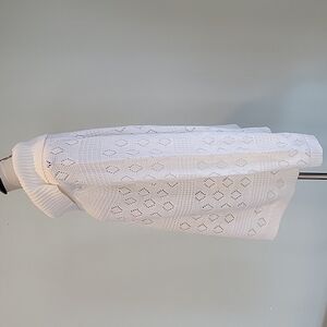 This is an off-white or winter white cowl neck sweater by Croft & Barrow. Nice weight to it, not too heavy and not too thin. Pretty pattern. Size is 1X. Excellent condition!