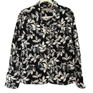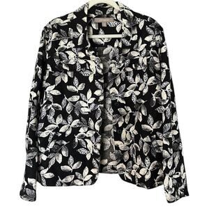 Croft & Barrel Floral Blazer Jacket Women's XL Linen Blend Black White Linen