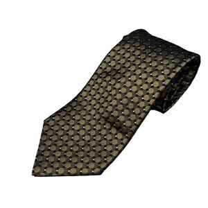 Croft & Barrow 100% Silk Necktie Black and Gold Geometric Hand Made Classic Tie