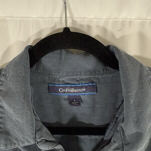 Croft Barrow 100% Silk Shirt Men's Large Blue Button Up Short Sleeve Collared