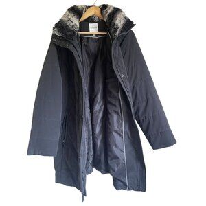 Croft & Barrow 1X Gray Quilted Faux Fur Trim Coat Hood Zip Pockets Soft Warm Cozy Long Line