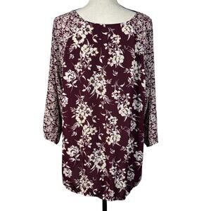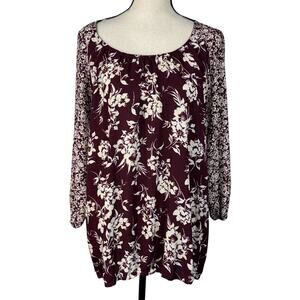 Croft & Barrow 1X-Large Top Floral 3/4 Balloon Sleeves Lightweight Round Neck