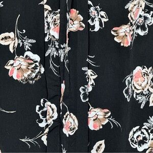 Croft & Barrow 2X Shirt Top Black White Floral Flower Cap Short Sleeve V Neck