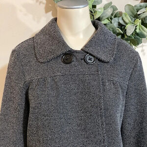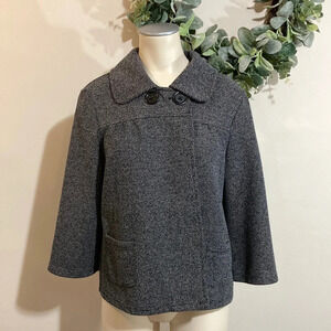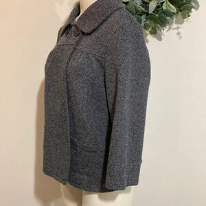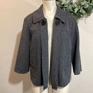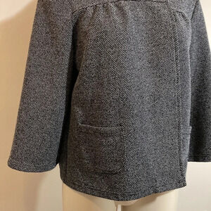 Croft & Barrow 3/4 Sleeved Jacket Blazer in size M. Cropped, can be worn as a swing style open coat or buttoned at the top. Black and white, 53% cotton and 46% polyester is machine wash and dry. Two front pockets, unlined and two decorative buttons on the back. Excellent like new condition from smoke free and pet free home. Please see photos for approximate measurements and details.