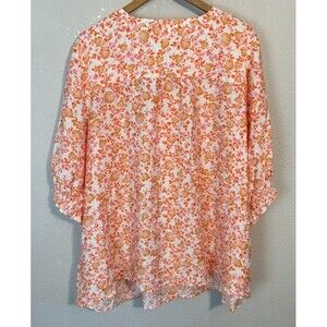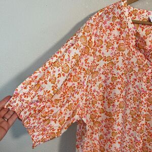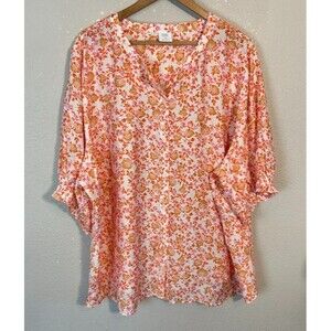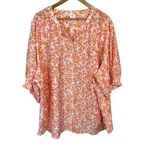 Croft & Barrow 3X Floral Print Blouse Button Up Short Sleeve Boho Rayon Blend