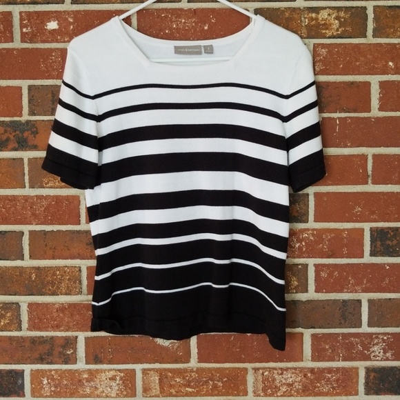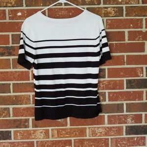 Croft &Barrow White and Black Striped short sleeve sweater
