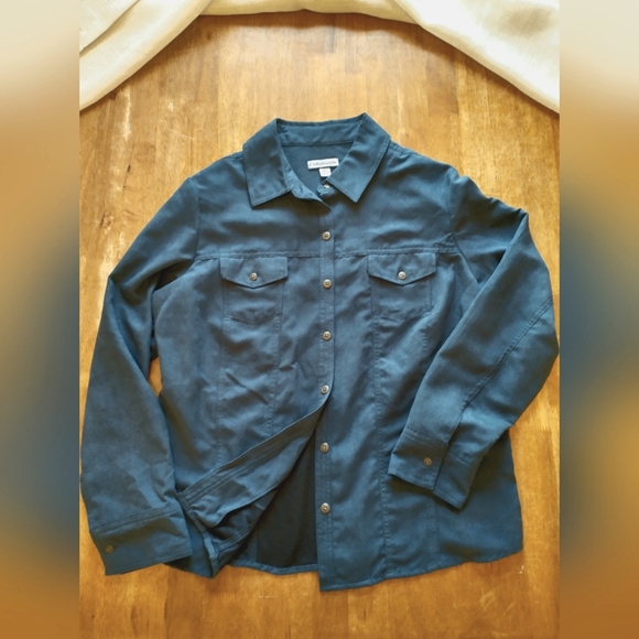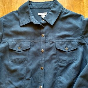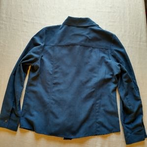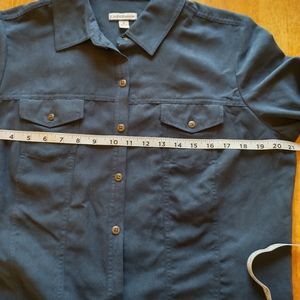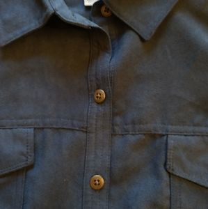 Blue button up top with long sleeves and breast pockets. Soft and warm fabric and lining.