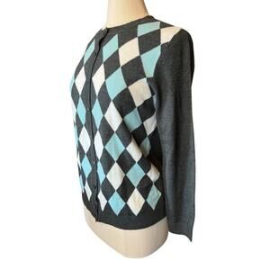 Croft & Barrow Argyle Blue Gray White Cardigan Sweater