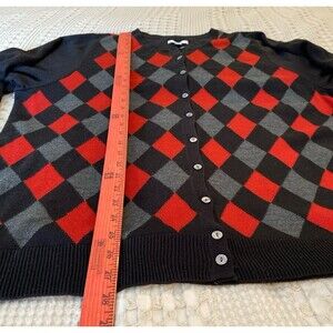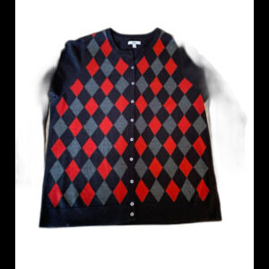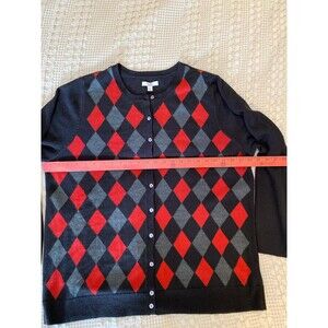 Croft & Barrow Argyle Cardigan Size 1X Black Red Diamond Checkered Button Down