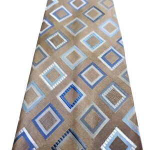 Croft & Barrow Beige Blue Woven Geometric Silk Tie Stain Resistant