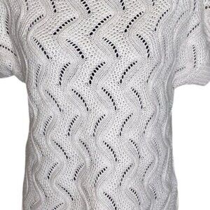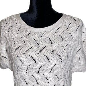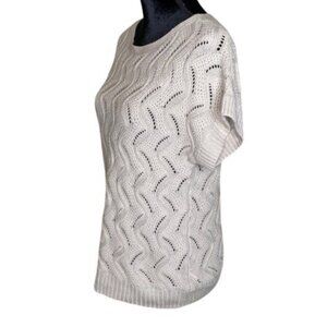 Croft & Barrow Beige Crochet Sweater Womens Size M Crew Neck Short Sleeve Ribbed