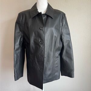 Croft & Barrow Black 100% Leather Button Down Jacket Womens L Classic Vintage Y2K