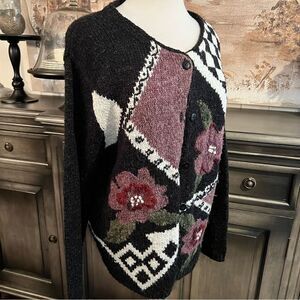 Croft & Barrow Black Embroidered Cardigan Sweater Size Size XL