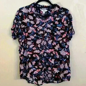 Croft & Barrow Black Floral Short Sleeve Button Blouse Size M