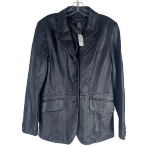 NEW Croft & Barrow Black Lambskin Leather Blazer Jacket 3 Buttons