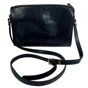 Croft & Barrow Black Leather Crossbody Bag Adjustable Strap, Zipper Closure VTG