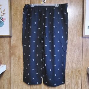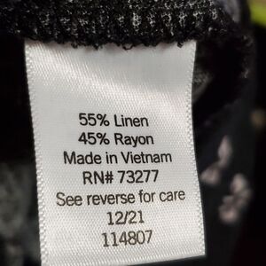 Black linen/rayon blend capri pants with a cute, white floral print. Size label is missing but comparing the measurements to the C&B size chart these should be equivalent to a 1X/16-18 in this brand. Pants feature functional front pockets.