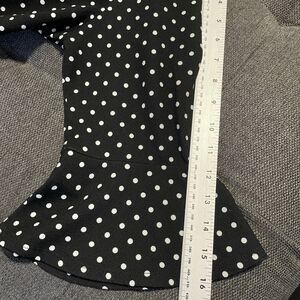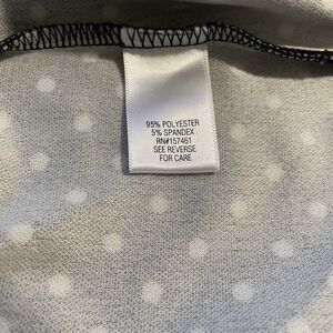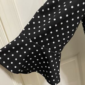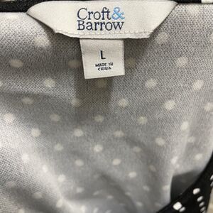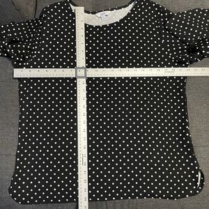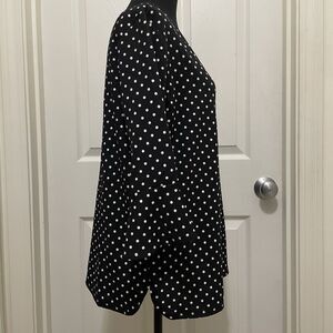 This is a Croft & Barrow black and white polka dot blouse. It has 3/4 Flounce sleeves and is a women's size Large. It is in excellent preowned condition. Measurements are included in photos.
