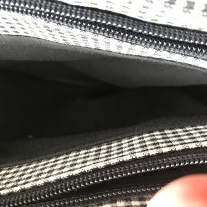 Croft and Barrow black and white purse/bag with solid black bottom and handles. It has black lining and a zipper for closure. Cute as ever! Gently used...See photos for details.