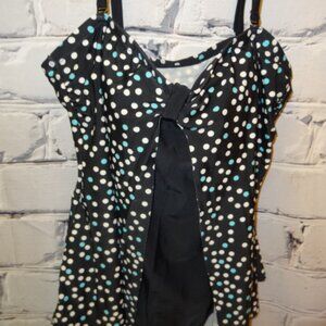 Croft & Barrow Black, White & Teal Pokka-Dot Tankini Swim Top