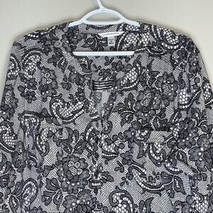 Croft & Barrow Black and White Patterned Blouse Size 2X