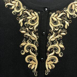 Croft & Barrow Black with Embroidered Gold Filigree Cardigan Sweater Size XL