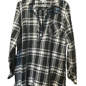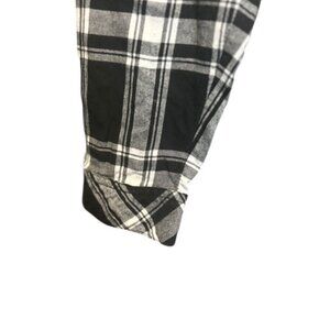 This Croft & Barrow Black/White Plaid Long Sleeve Shirt is made from comfortable 100% cotton flannel material, features a collared neckline with button closure halfway down front, roll tab sleeves and has one upper front pocket. Size XL regular fit provides a comfortable and flattering fit for everyday wear. Easy to care for with machine washable instructions. Measures 30 inches long from neck to hem, 24 inches from arm pit to arm pit and 24-inch sleeves.