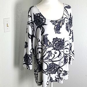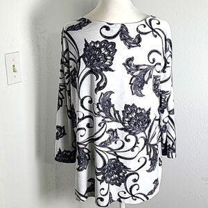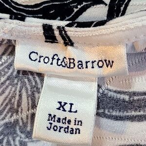 Croft & Barrow Black, White & Tan Floral Design Top, Size XL