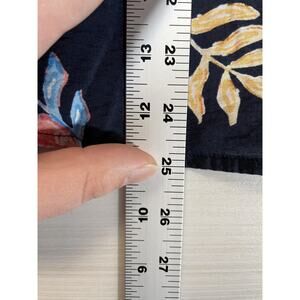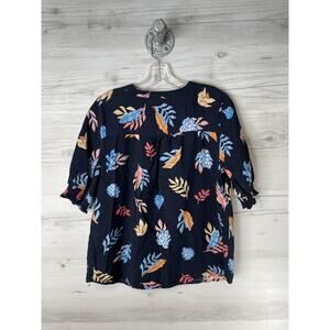 Croft & Barrow Blouse Womens Small Navy Leaf Print Button Front 3/4 Sleeve