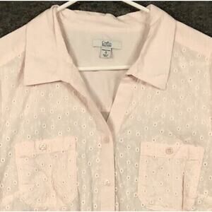 Croft & Barrow Blouse Womens XL Eyelet Lace Pale Pink Button Up L/SLV Pockets