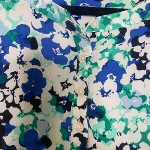 Croft & Barrow Blouse Womens XL Floral Green Blue 3/4 Sleeves Casual Flowy