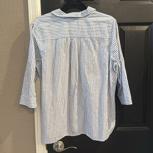 Classic blue and white striped shirt. Features button-up design. Ideal for casual wear.